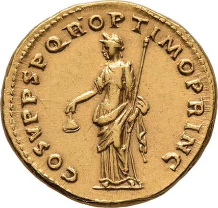 | 3. | Aureus, Rv:"IVPPITER.CVSTOS.", sedící Jupiter zleva,