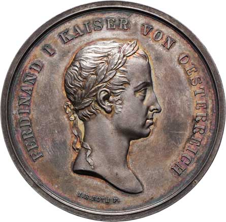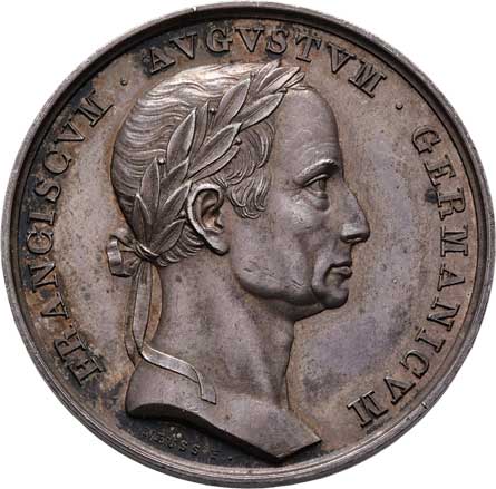 poprsí císaře zleva, opis /slavnostní scéna v Terstu, opis a nápis, Sign., bronz 58 mm, H.3751(Ag), patina |