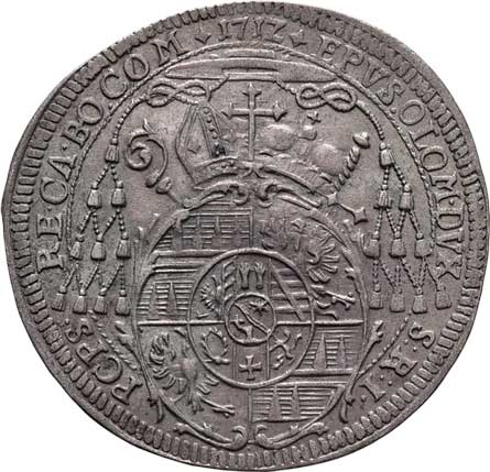 v ozdobné kartuši, Ag 31mm, 9.551g, PR.54, Don.3502, BPM.184, na hraně nep.stopy po zasazení, nep.rysky R! |
