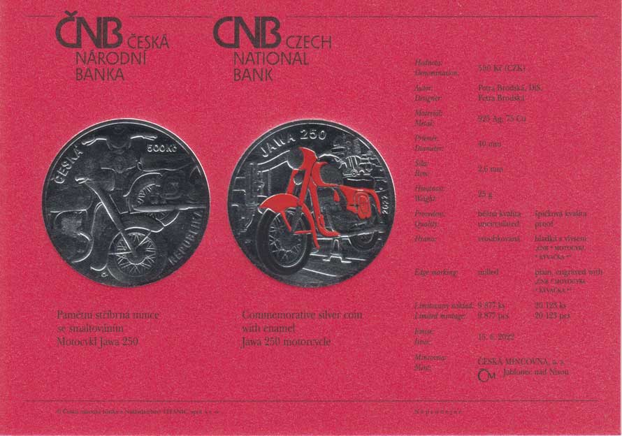 | 675. | 500 Koruna 2022 - motocykl Jawa 250, (Ag925, 25.0g,
