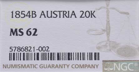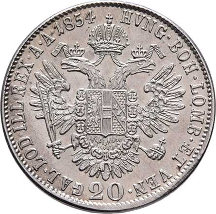 | 764. | 20 Krejcar 1854 B - hlava zprava, mince zatavena