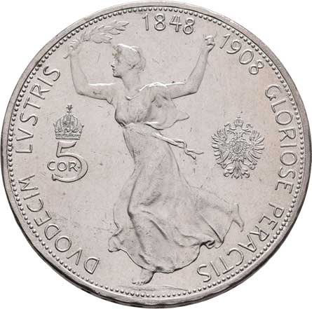 | 797. | 5 Koruna 1908 - jubilejní, 23.938g, nep.hr., zcela