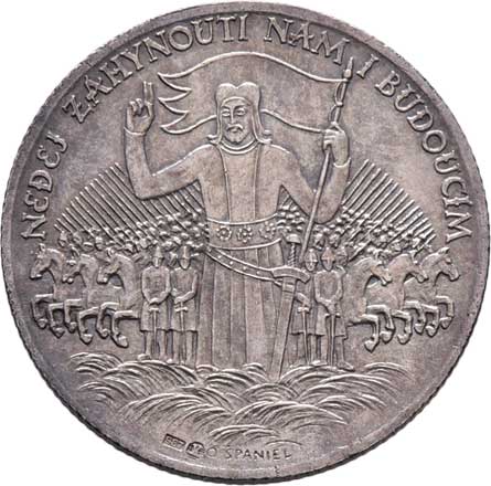 Václav na koni, andělé, vročení / svatý Václav, znak, opis, Punc., Ag987, 28mm, 14.947g, pěkná patina |
