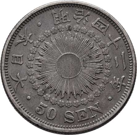 | 2573. | 50 Sen, rok 44 (= 1911), Y.31 (Ag800), 10.084g,