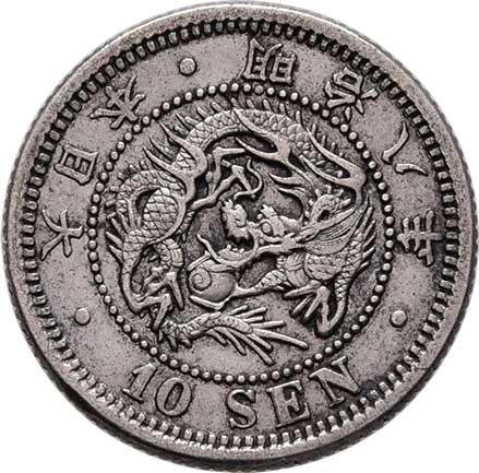 | 2583. | 10 Sen, rok 10 (= 1877), Y.23 (Ag800), 2.685g,