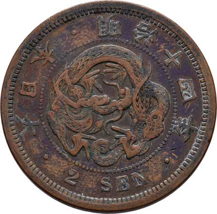 | 2589. | 2 Sen, rok 14 (= 1881), Y.18.2 (bronz), 14.182g,