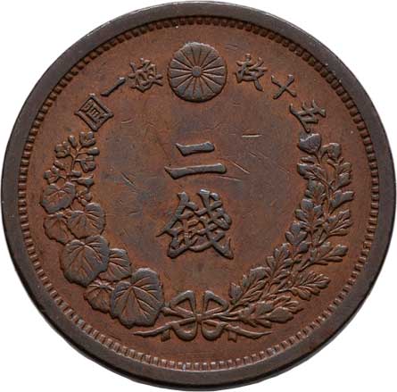 | 2588. | 2 Sen, rok 13 (= 1880), Y.18.2 (bronz), 14.287g,