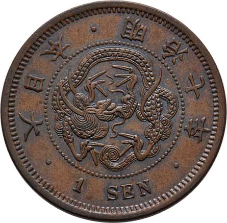 | 2592. | 1 Sen, rok 7 (= 1874), Y.17.1 (bronz), 7.348g,