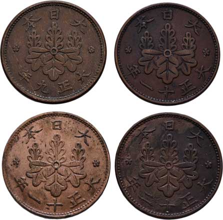 | 2595. | 1 Sen, rok 9,10,11,12 (= 1920-1923), Y.42 (bronz),