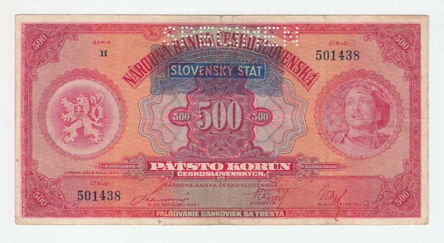 3101. 500 Koruna 1929 - přetisk, sér. H, BHK.44, He.47a.s1,