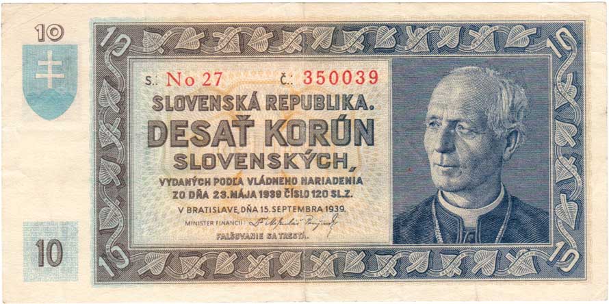 3107. 10 Koruna 1939, série No27, BHK.46b, He.49a2.s2,