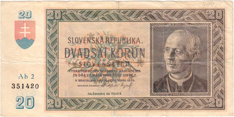 3108. 20 Koruna 1939, série Ab2, BHK.47a, He.50a1,