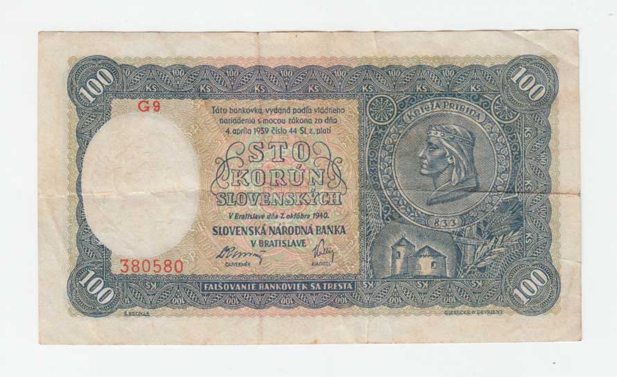 3109. 100 Koruna 1940, 1.vyd., série G9, BHK.48a, He.51a1,