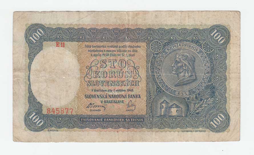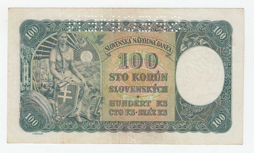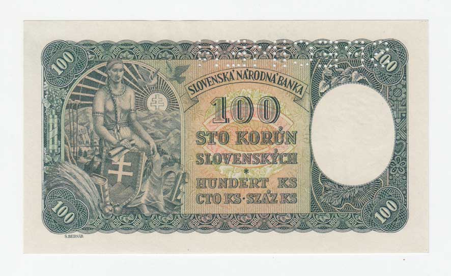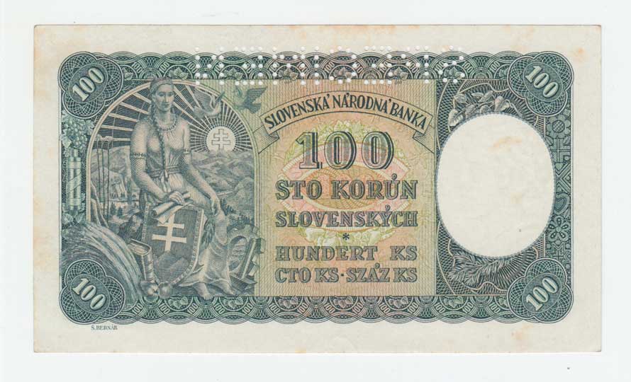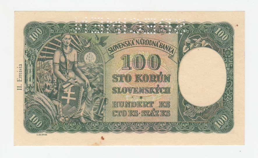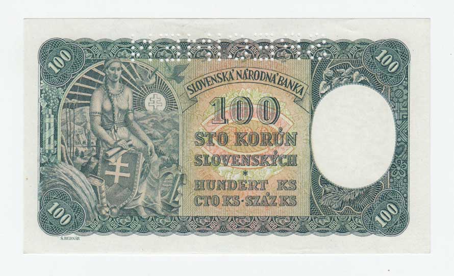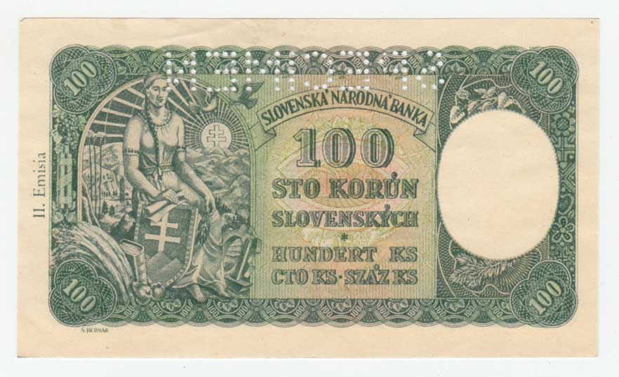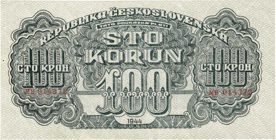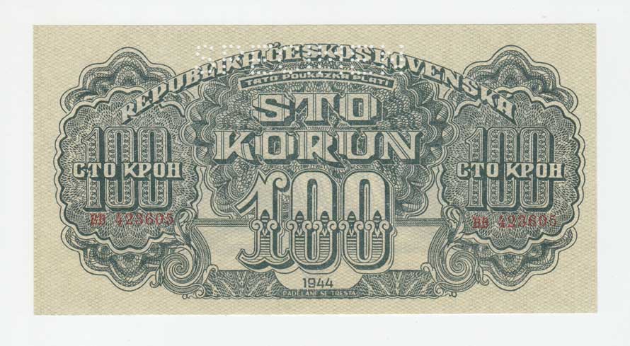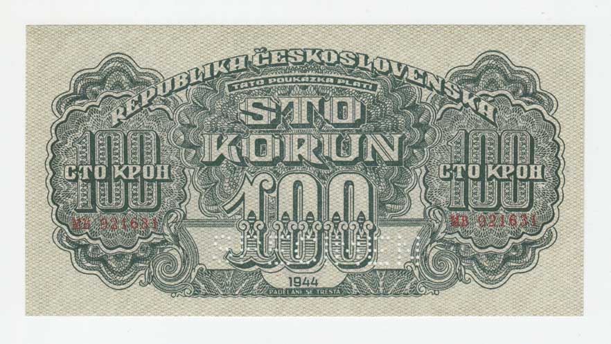 3189. 100 Koruna (1945), série JU, BHK.74, He.79a,