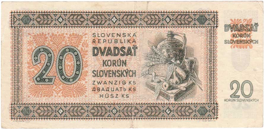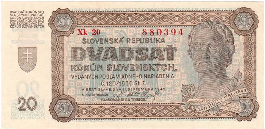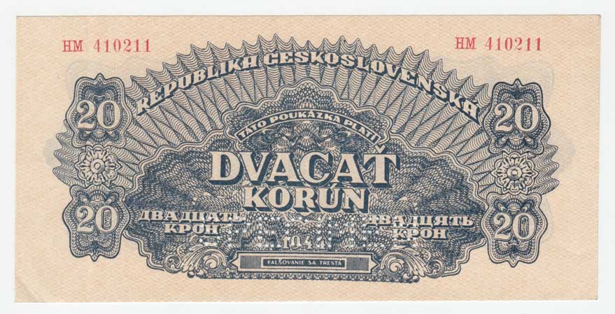 3179. 20 Koruna (1945), série HV, BHK.72, He.77a.s1,