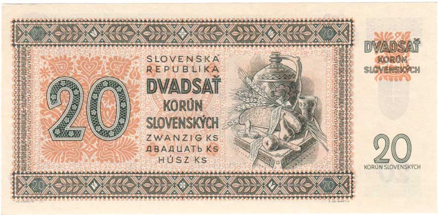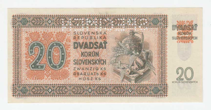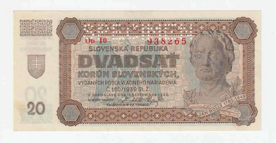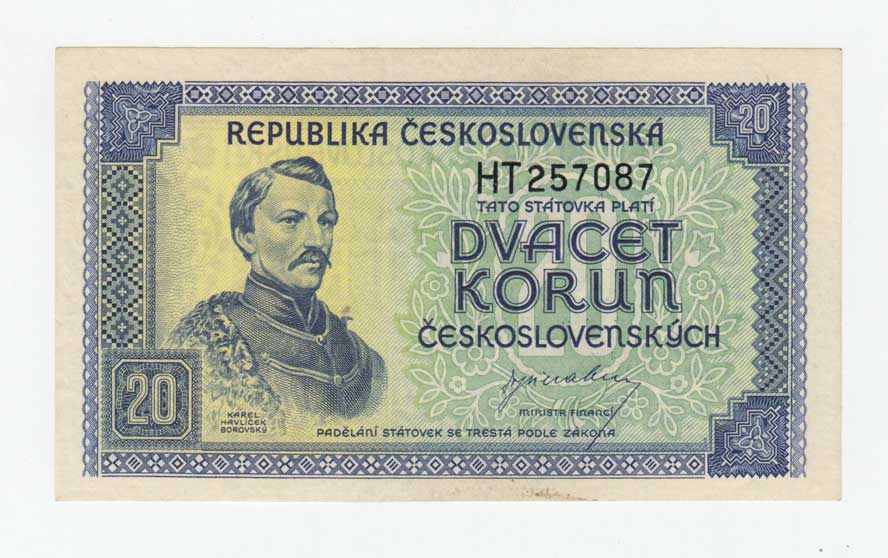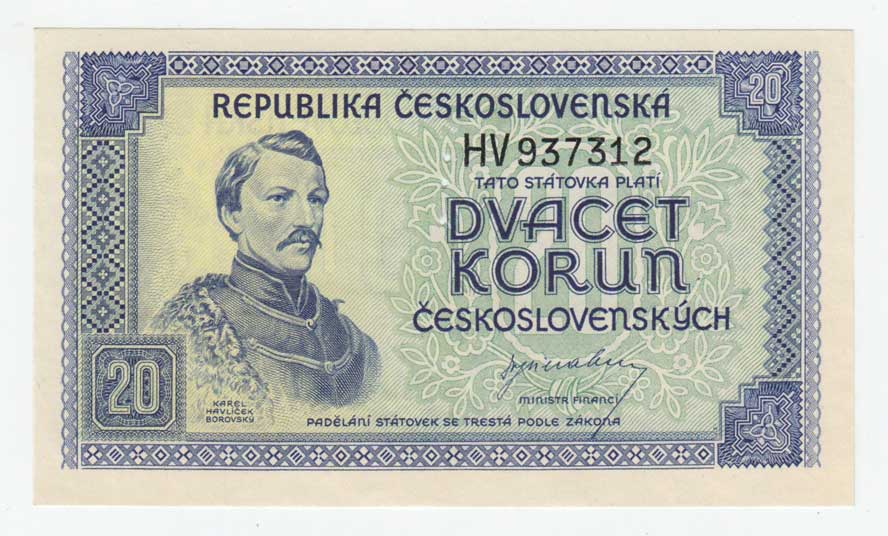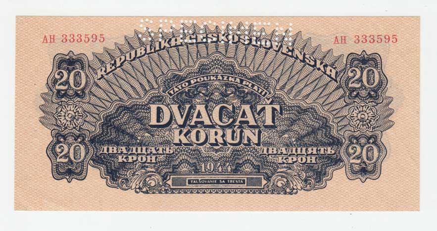 3177. 20 Koruna (1945), série HT, BHK.72, He.77a, "neperf." 1+ 160,- 220,-