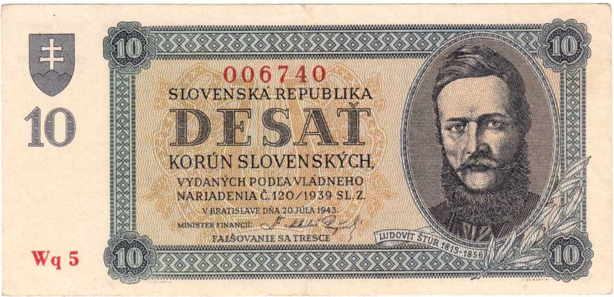 3125. 10 Koruna 1943, série Wq5, BHK.54a, He.58a1,