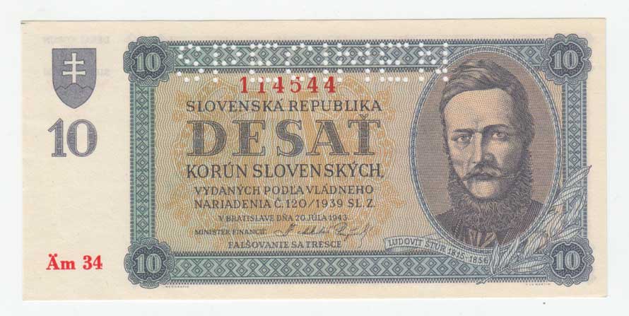 3173. 10 Koruna (1945), série SK, BHK.71, He.76a1,