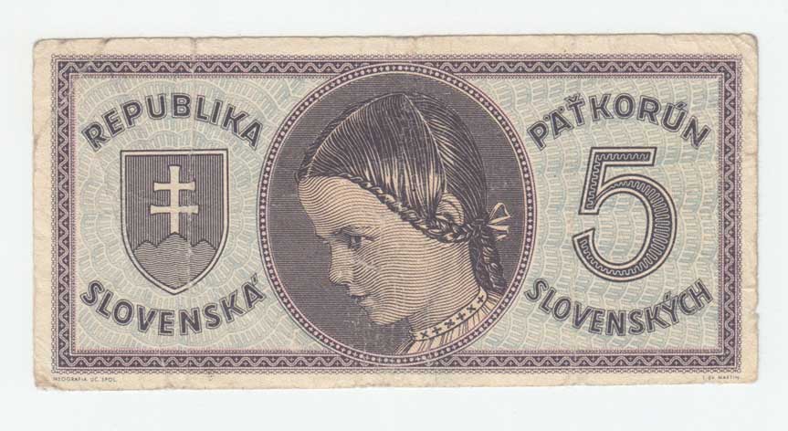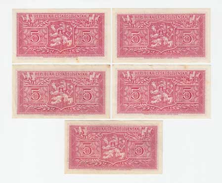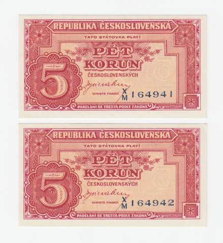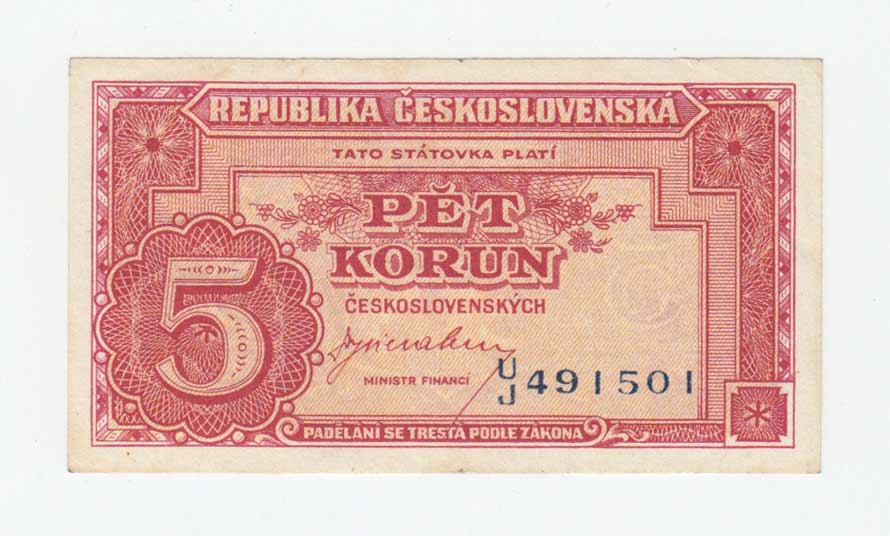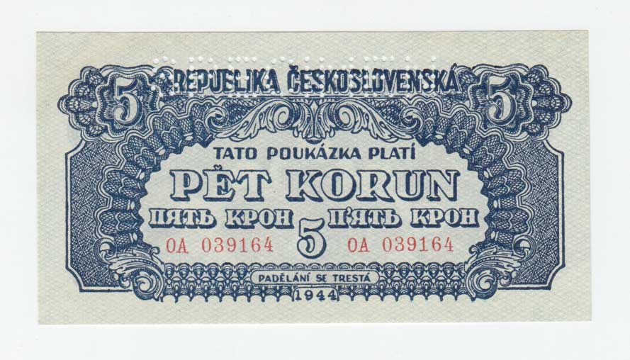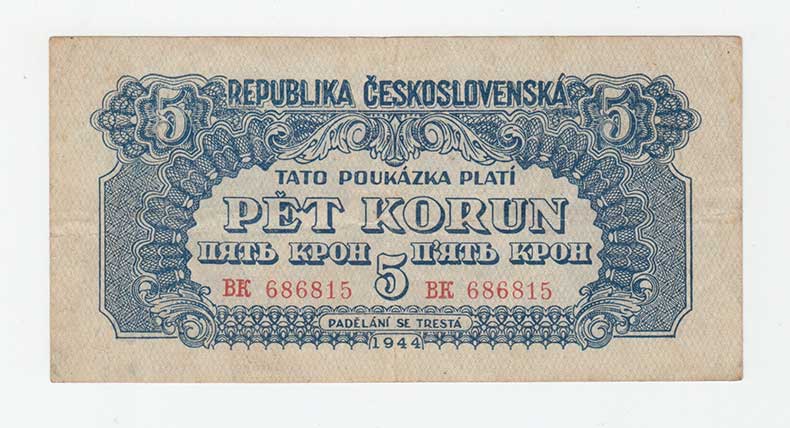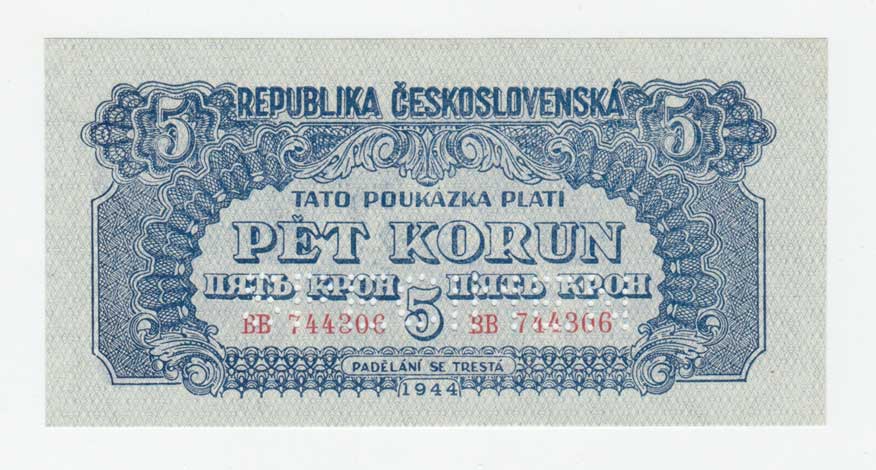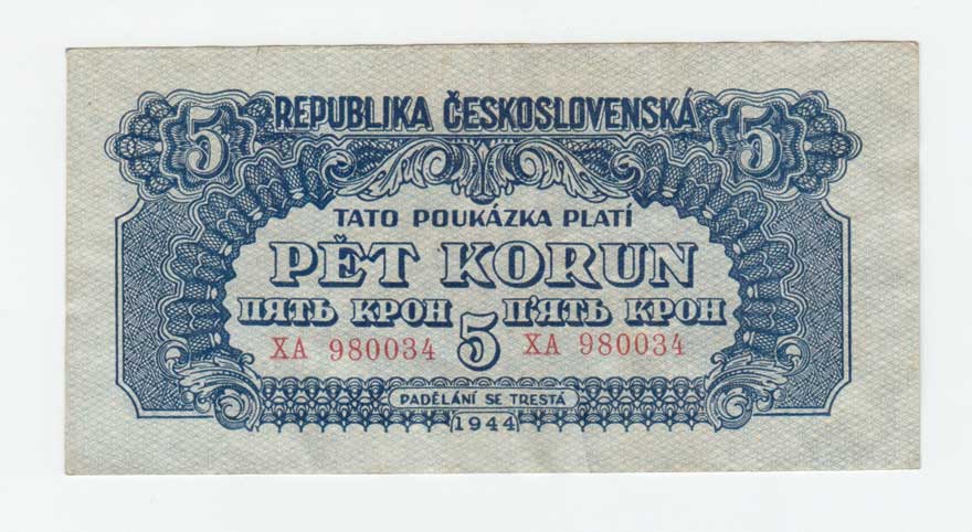 3172. 5 Koruna (1945), série UJ, UZ, XE, ZB, ZK, BHK.70,