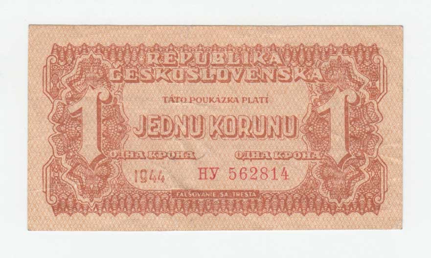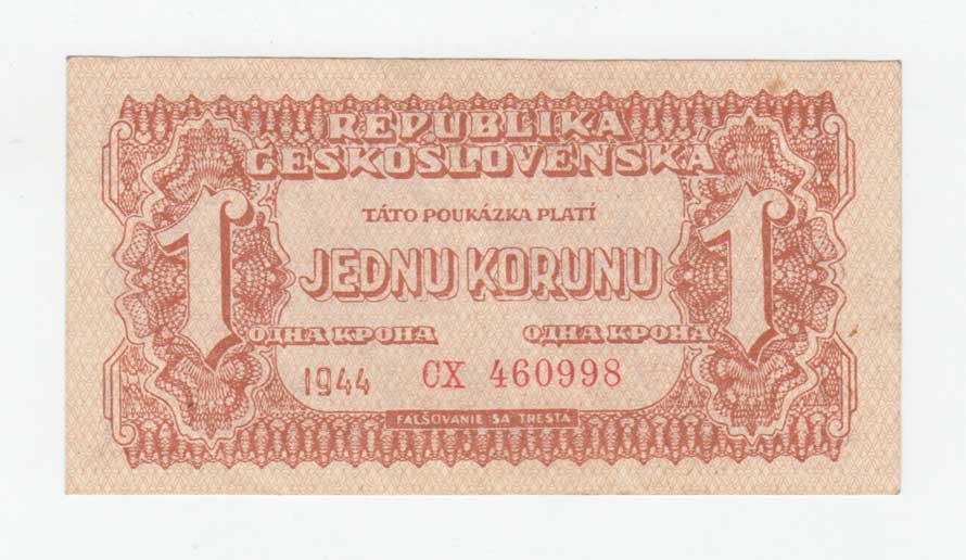 3131. 1 Koruna 1944, série AA, BHK.56, He.61a1.s1, nahoře
