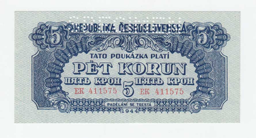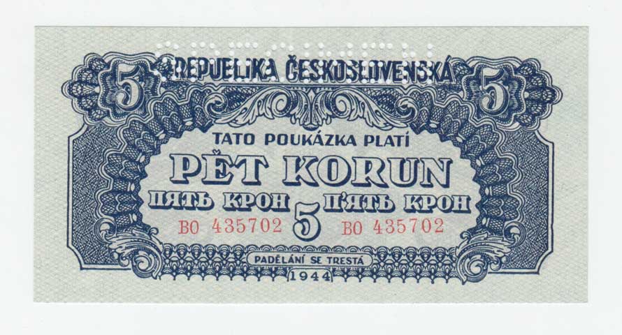 3168. 5 Koruna (1945), série UG, BHK.70, He.75a, "neperf." N 100,- 160,-