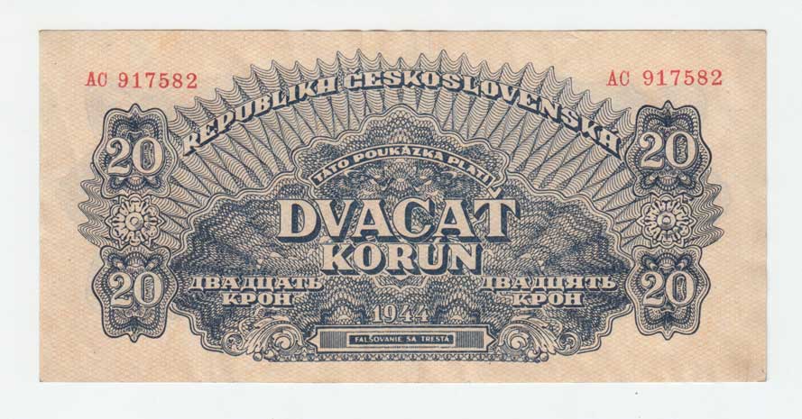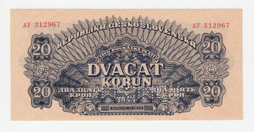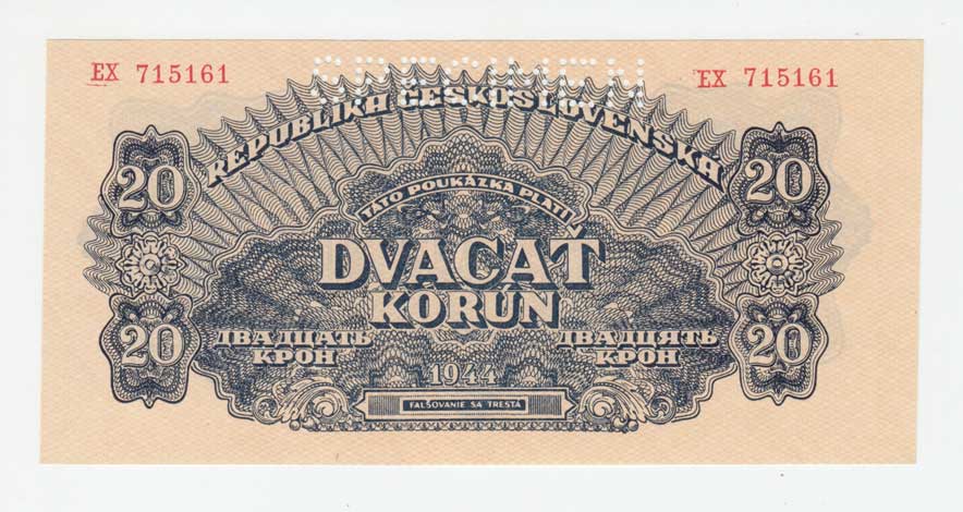 3178. 20 Koruna (1945), série LB, BHK.72, He.77a, "neperf." 1- 140,- --.-