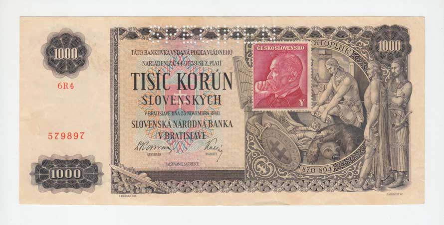 3165. 1000 Koruna 1940, série 6R4, BHK.65, He.70a.s1,