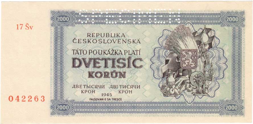 3167. 2000 Koruna 1945, série 17Šv, BHK.69bA, He.74a2.s1,