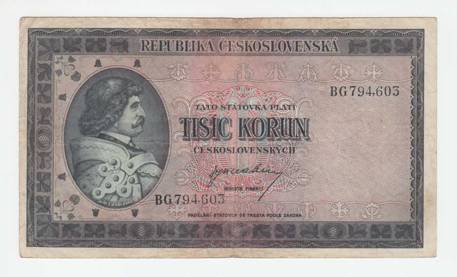 3199. 1000 Koruna (1945), série BJ, BHK.76, He.81a,