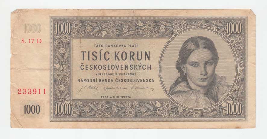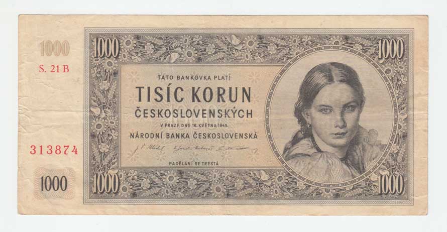 | 3213. | 1000 Koruna 1945, série 01B, 11B, 17B, 22B, BHK.78b,