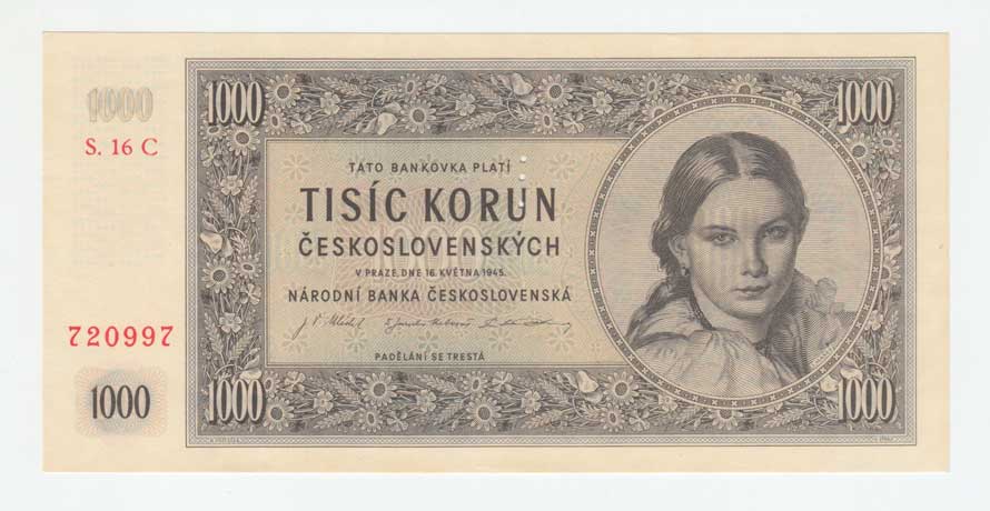 | 3219. | 1000 Koruna 1945, série 04C, 18C, 29C, BHK.78c1,