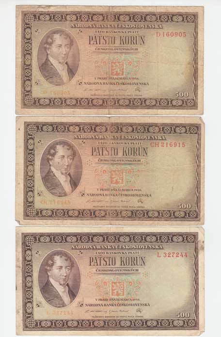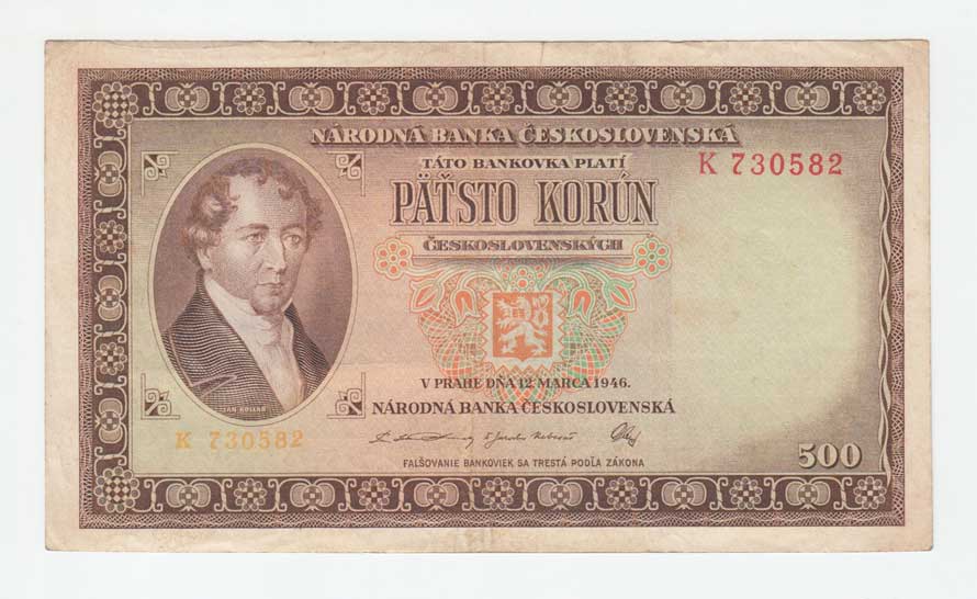 | 3228. | 500 Koruna 1946, série J, BHK.80a, He.87a, "neperf." | 3+ | 100,- | 190,- |