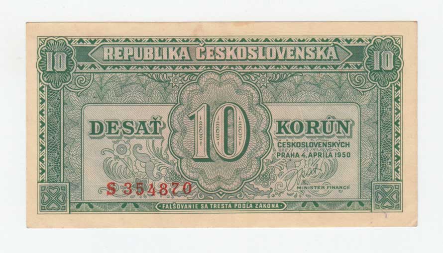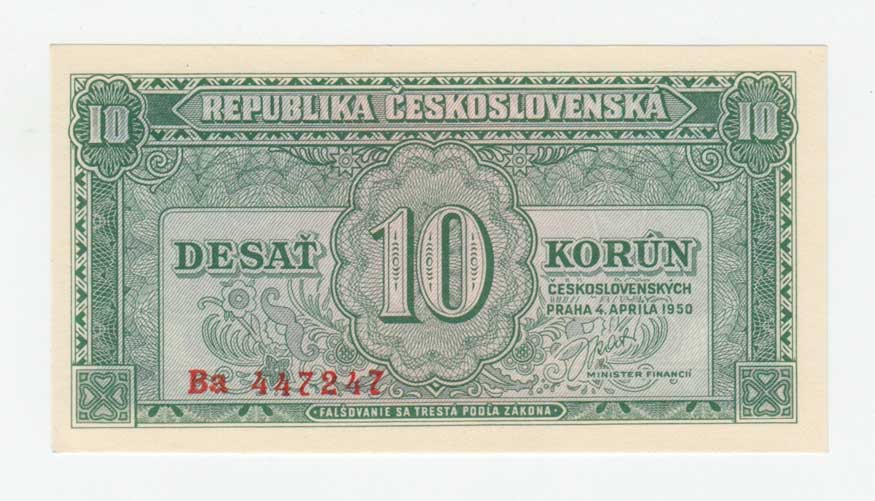 | 3256. | 10 Koruna 1950, série Za, BHK.84b, He.92b, "neperf." | 1+ | 40,- | 40,- |