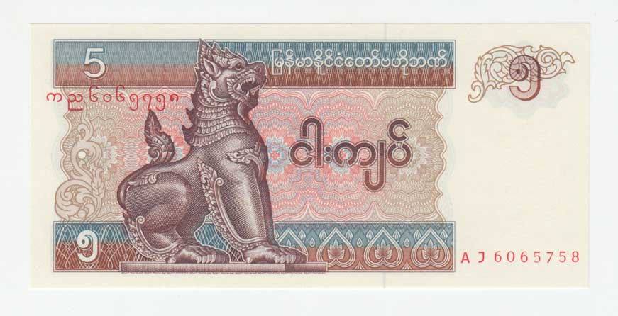 | 3405. | 5 Kyats (1997), Pick.70b | N | 10,- | --.- |
