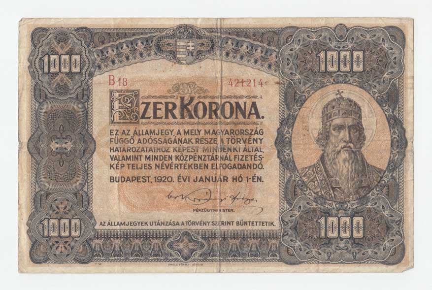 | 3471. | 10.000 Koruna 1920, Pick.68, v reversu vydřená plocha