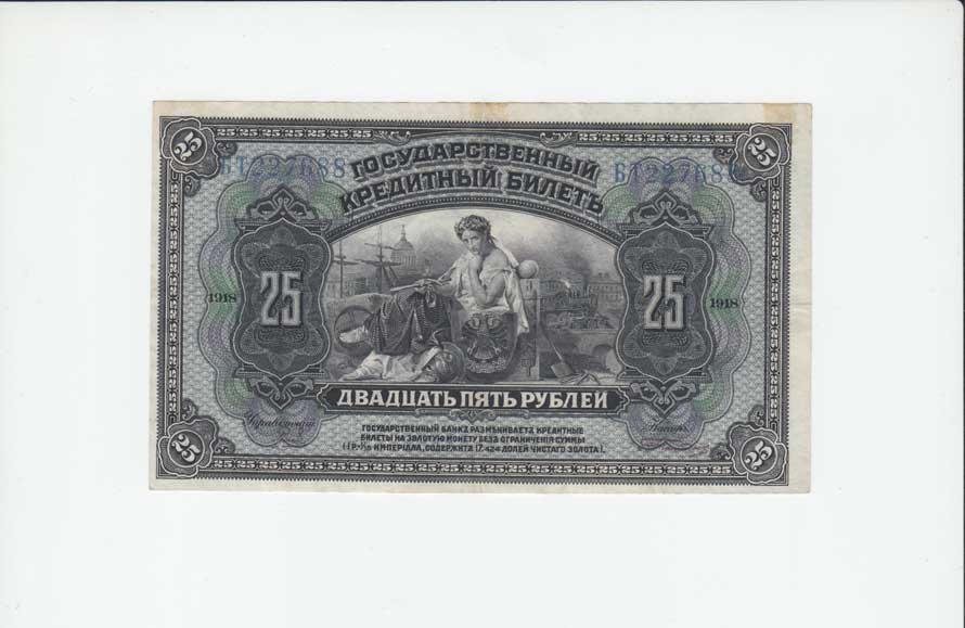 | 3703. | 25 Rubl 1918, Pick.39Aa, v reversu stopy lepu | 3 | 100,- | --.- |