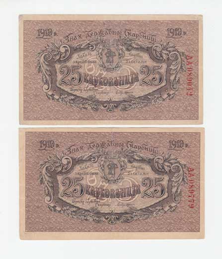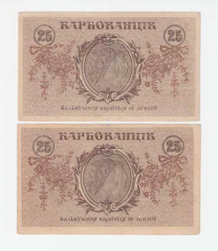 | 3738. | 25 Karbovanců 1919, Pick.37a, 2ks | 2 | 100,- | 420,- |