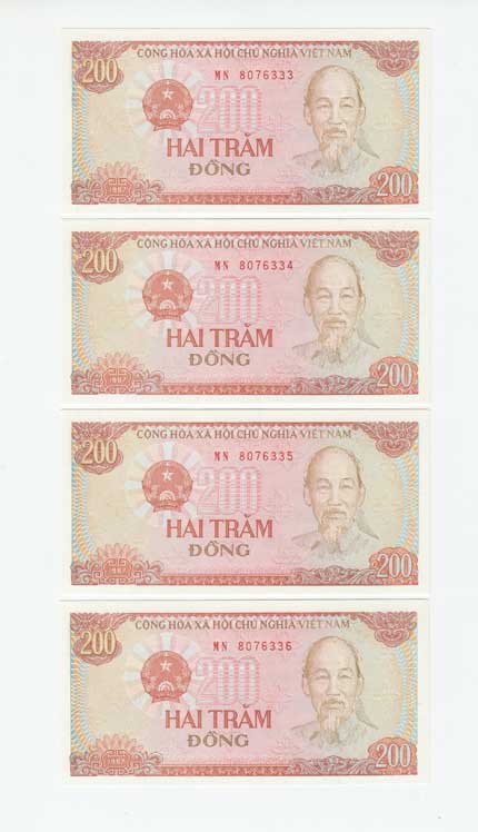 | 3743. | 200 Dong 1987, P.100c, čtyři následující čísla | N | 30,- | --.- |