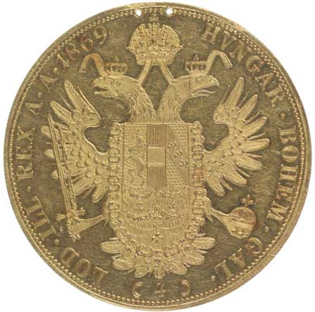 21. | 4 Dukát 1869 A (raženo pouze 18.740 ks)