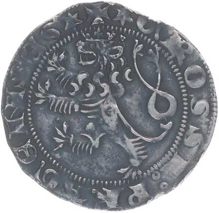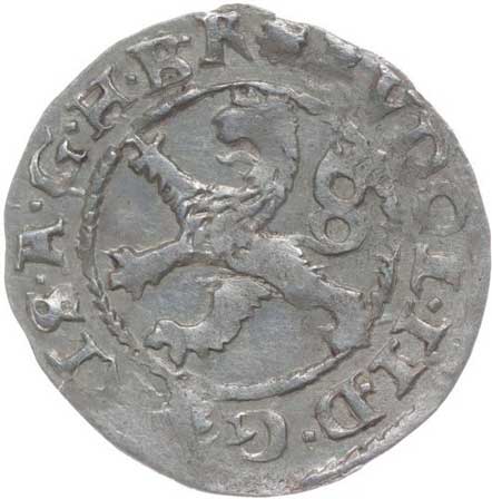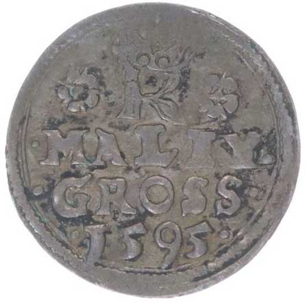 389. | Malý groš 1595, Jáchymov-Hoffmann, HN.8b (opis 8), J.5 dr.ned. | 1/1 | 500,- | --.- |