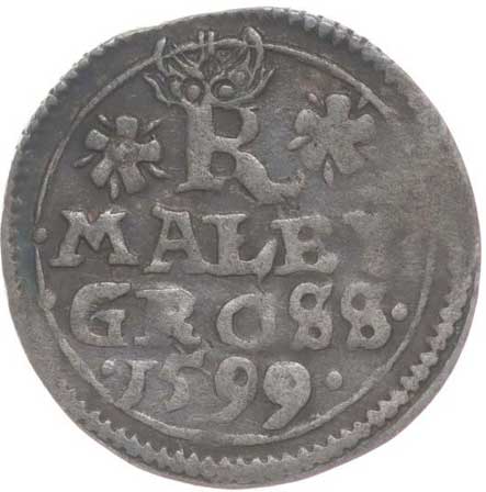 377. | Malý groš 1599, Praha-Erckerová, HN.14/38b (opis 7c) - kříž.ražba