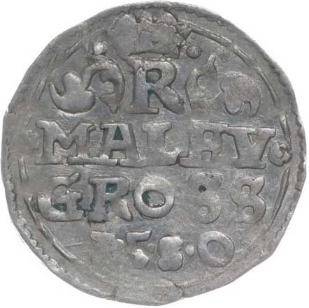 379. | Malý groš 1580, K.Hora-Šatný, HN.1b (opis 7a), Ja.6b