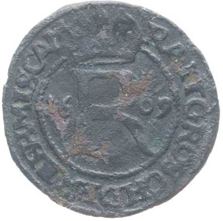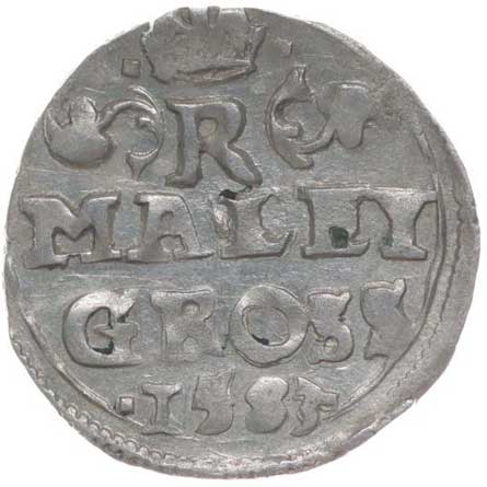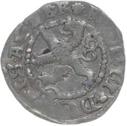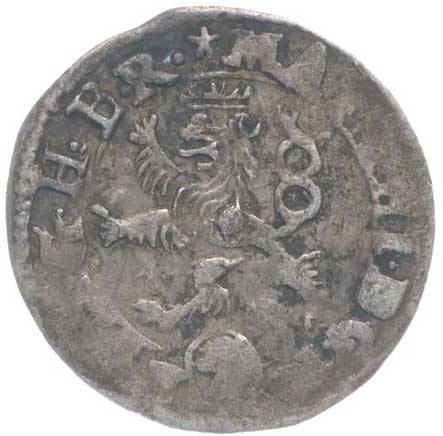 383. | Malý groš 1587, K.Hora-Šatný, HN.1b (opis 7a), Ja.6b č.ned. | -1/1- | 500,- | --.- |