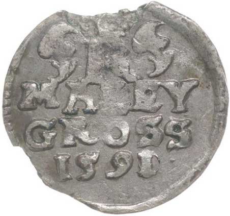 384. | Malý groš 1590, K.Hora-Šatný, HN.2a (opis 7a), Ja.6b