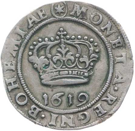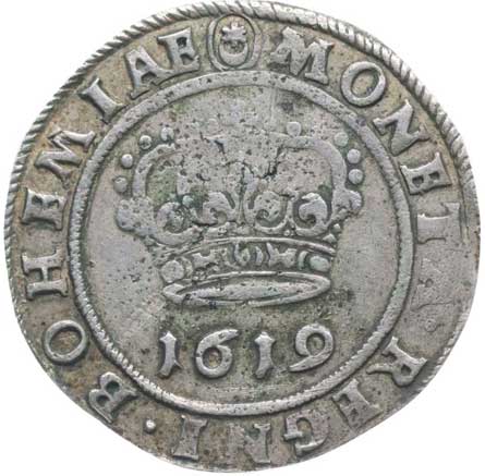 399. | 24 Krejcar 1619, Praha-Hübmer, J.2a, MKČ.568 | -1/1- | 2000,- | --.- |