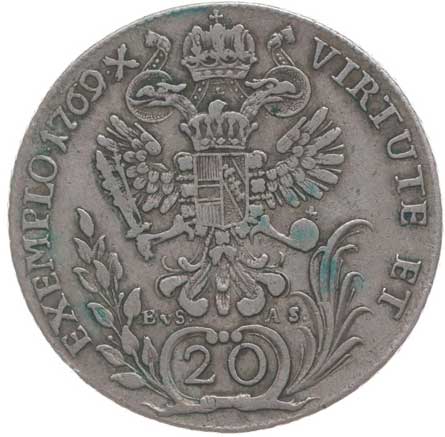 501. | 20 Krejcar 1769 C/EvS-AS, Praha, P.9, MKČ.2007 | 2/1- | 500,- | --.- |