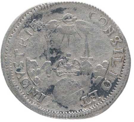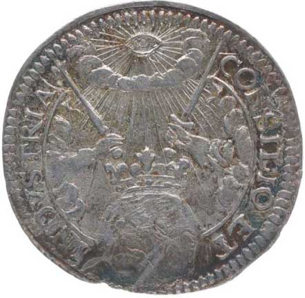 Koruna držená anděly, 6řádk.nápis / pod božím okem drží dvě ruce žezlo a meč, Ag 19 mm, 1,24 g, Nov.IX/E-13b, Mo.874, LG.II/488 R! |