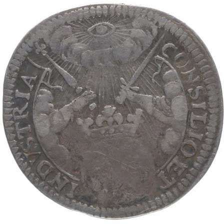 Koruna držená anděly, 6řádk.nápis / pod božím okem drží dvě ruce žezlo a meč, Ag 19 mm, 1,42 g, Nov.IX/E-14b, Mo.874, LG.II/488 R! |