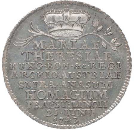 535. | Větší peníz na holdování hornorakouských stavů v Linci, 25.6.1743