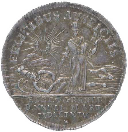 531. | Malý žeton na volbu římského císaře 24.1.1742 ve Frankfurtu